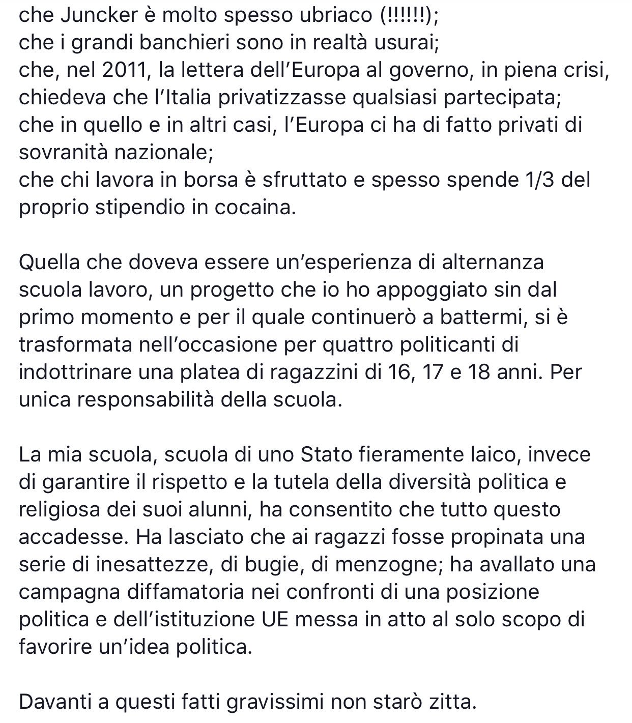 Lettera sui tre anni di scuola media