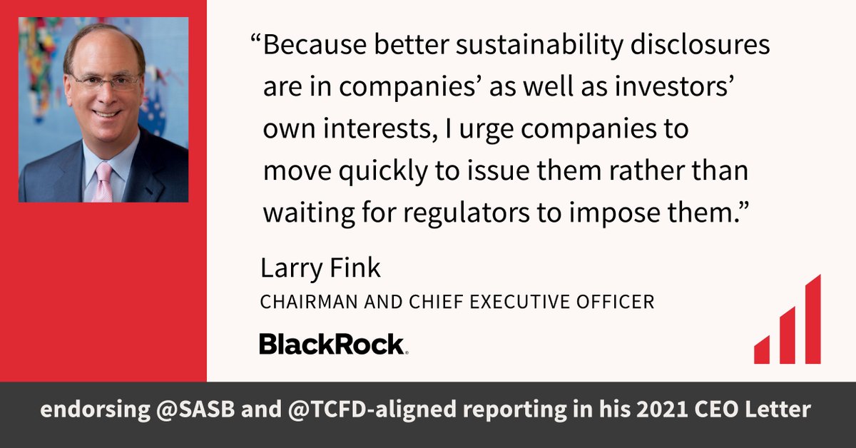 BlackRock's Larry Fink Issues Annual Letter. Here's What It Says. In his 2020 letter, Fink addressed the energy transition, saying “climate risk is investment risk” and that “with the impact of sustainability ... Larry Fink's Annual Chairman's Letter to Investors Larry Fink is Founder, Chairman and CEO of BlackRock, Inc. This post is based on Mr. Fink's annual letter to investors.
